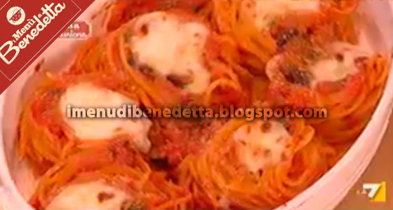 - Formare i nidi di spaghetti arrotolando la pasta con la forchetta e con l'aiuto di un mestolo (vedi video) e disporli in una pirofila unta d'olio.